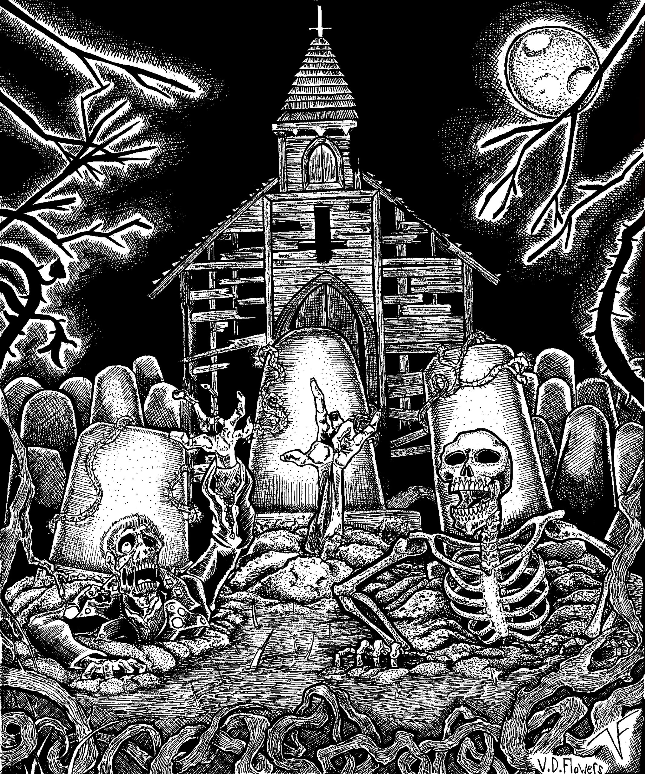 Now in her 20s, Victoria has created album and promotional art for several independent artists and bands, including 2 album covers for her sister Rachel, and one for her mom Jeanie. But Vicky’s passion has always been horror, whether it be inspired by the literature of H.P. Lovecraft, the films of John Carpenter, Sam Ramey and others, or her own imagination.