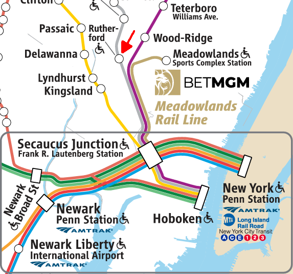 So…how do you get to Rutherford, NJ? Google Maps (or the like) will quickly and easily show you the many travel options that exist, and if you’re within a reasonable distance (or you just love to take long drives) you’ll find major highways and simple directions to Rutherford. However, because it is a popular commuter area in New Jersey located near the heart of New York City, downtown Rutherford is a major stop on the Bergen Line of the NJ Transit train system. You can ride by train from Penn Station in Manhattan to Rutherford in about 25-30 minutes for less than $7! Once there, you are a very short walk from the Center (see the map above). Another alternative is NJ Transit bus service from the Port Authority Terminal in Manhattan to Rutherford…a 25-30 minute trip for less than $6! And, for those traveling from afar, you can fly into Newark Liberty International Airport, and take a NJ Transit train ride for about 30-40 minutes to downtown Rutherford for less than $18!